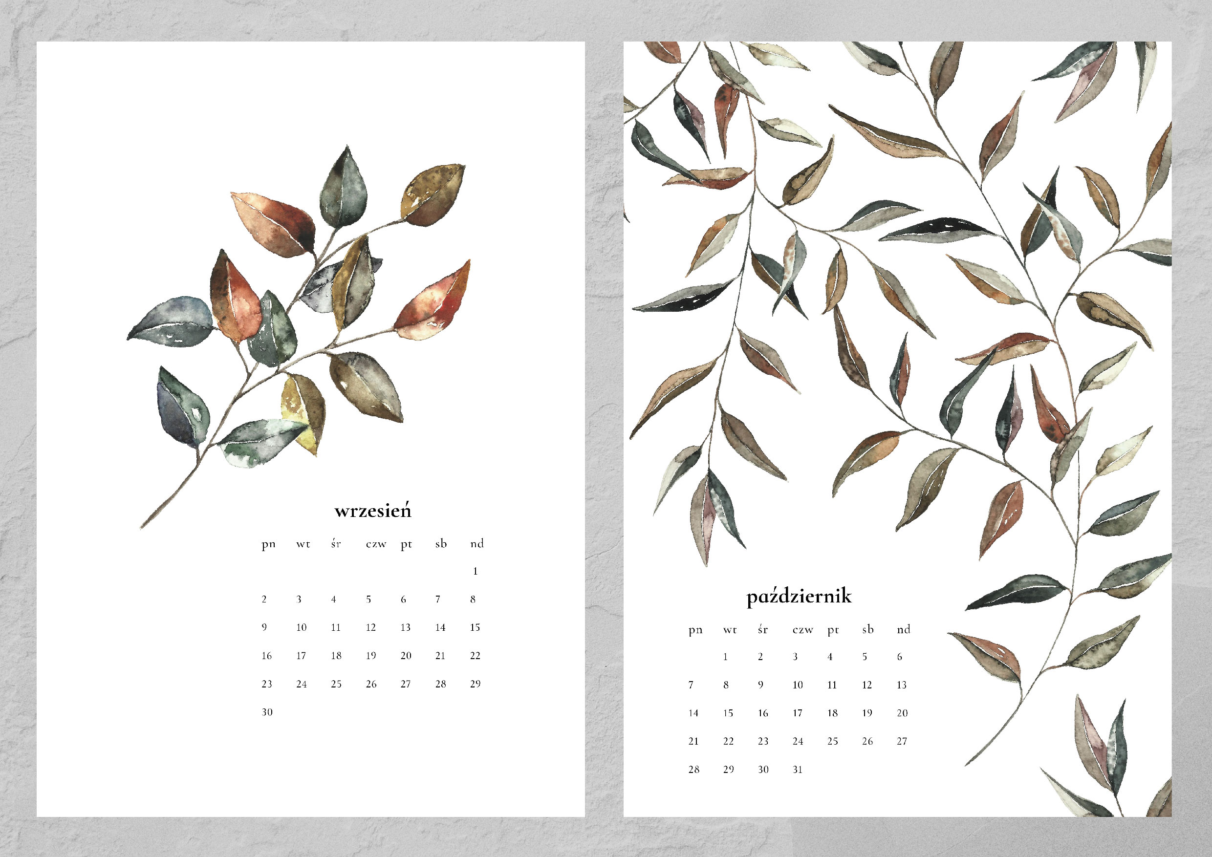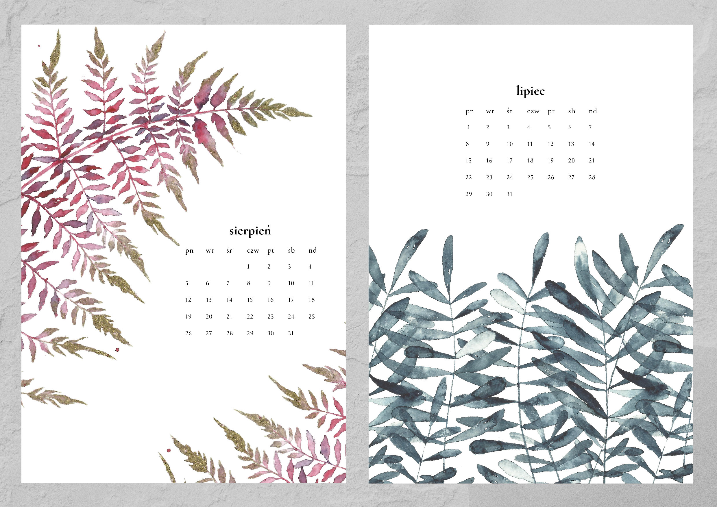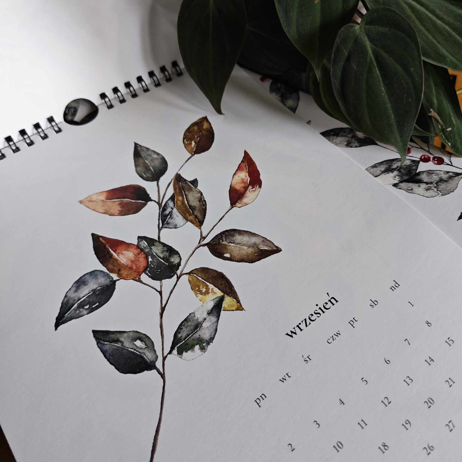 Kalendarz składa się z trzynastu autorskich grafik (12 miesięcy plus okładka). Każda z nich została namalowana ręcznie farbami akwarelowymi, a następnie przeniesiona cyfrowo na karty kalendarza. Całość spięta jest spiralą z wygodną zawieszką.