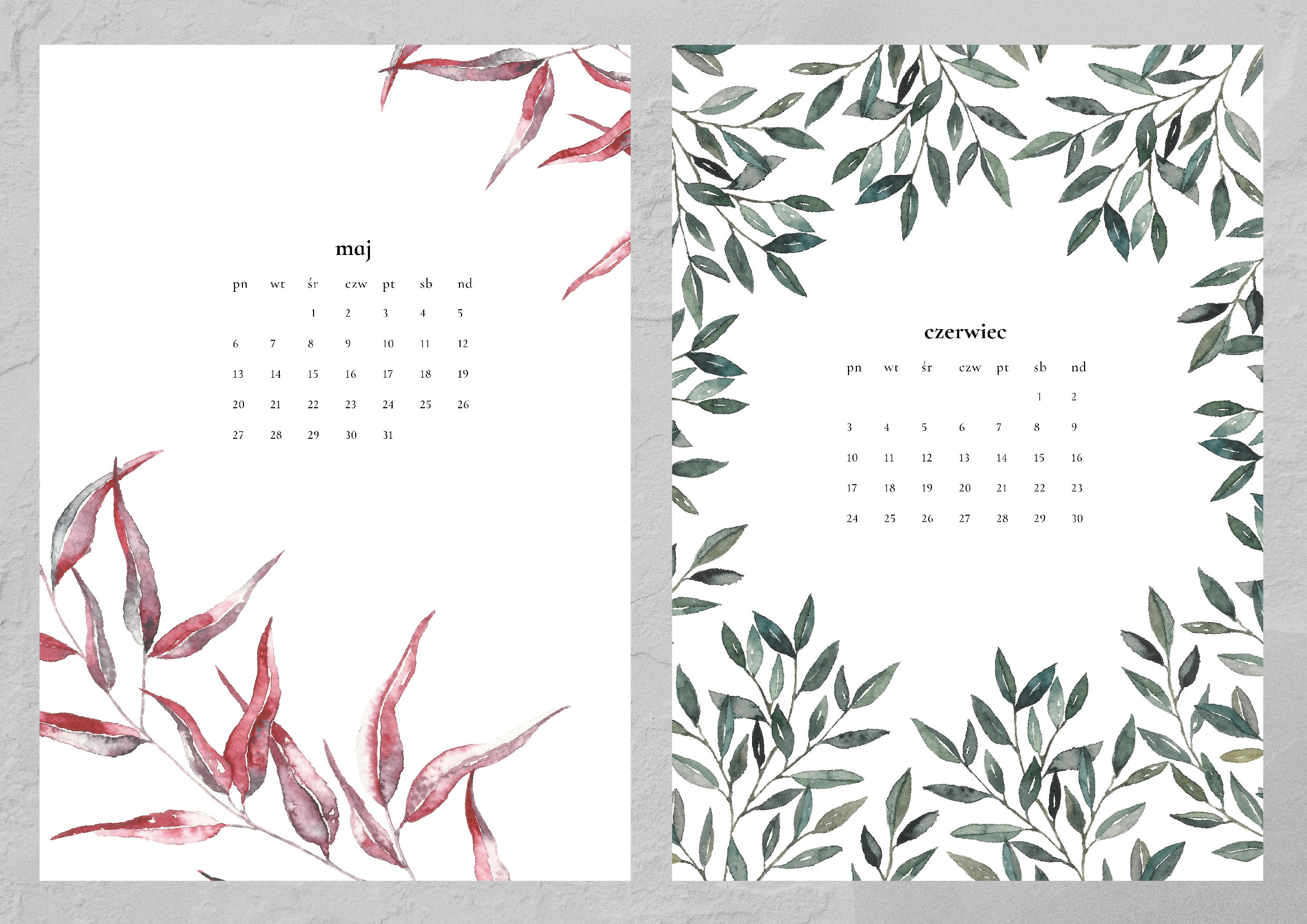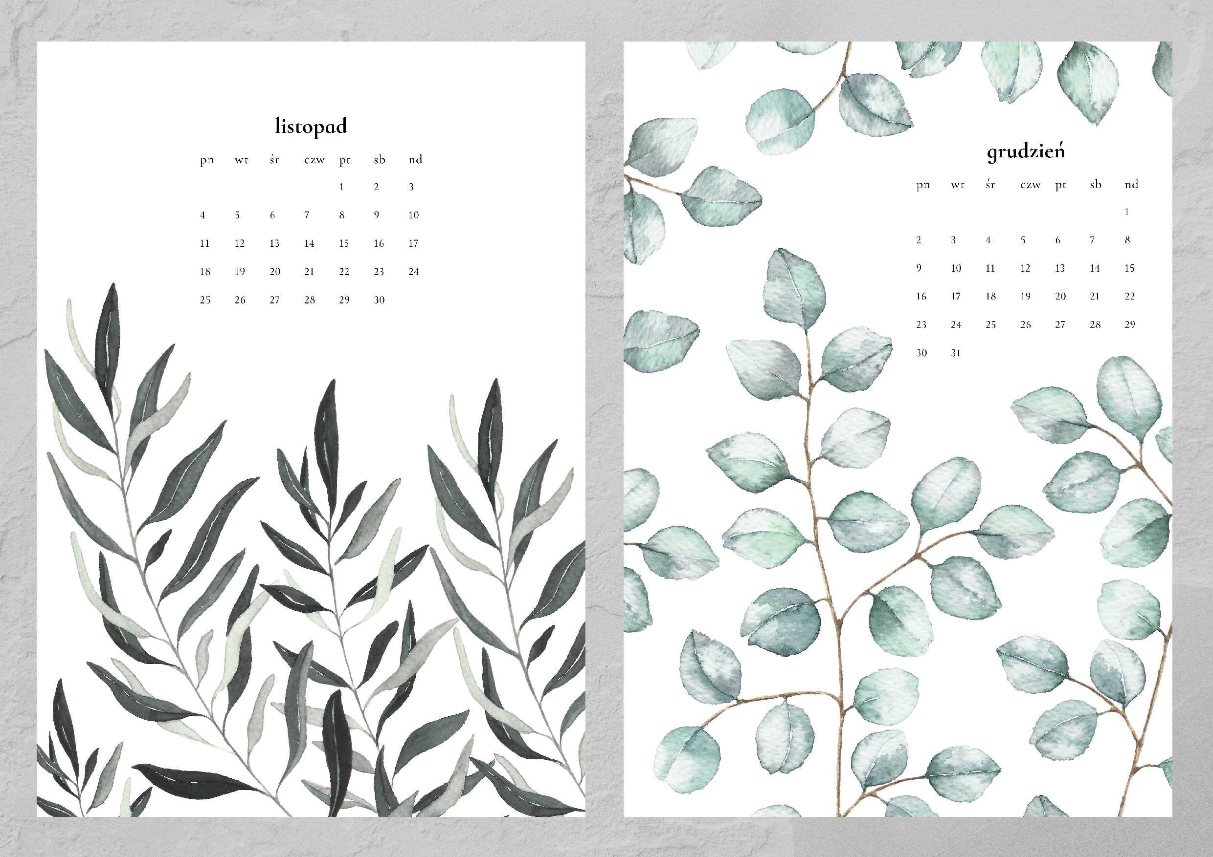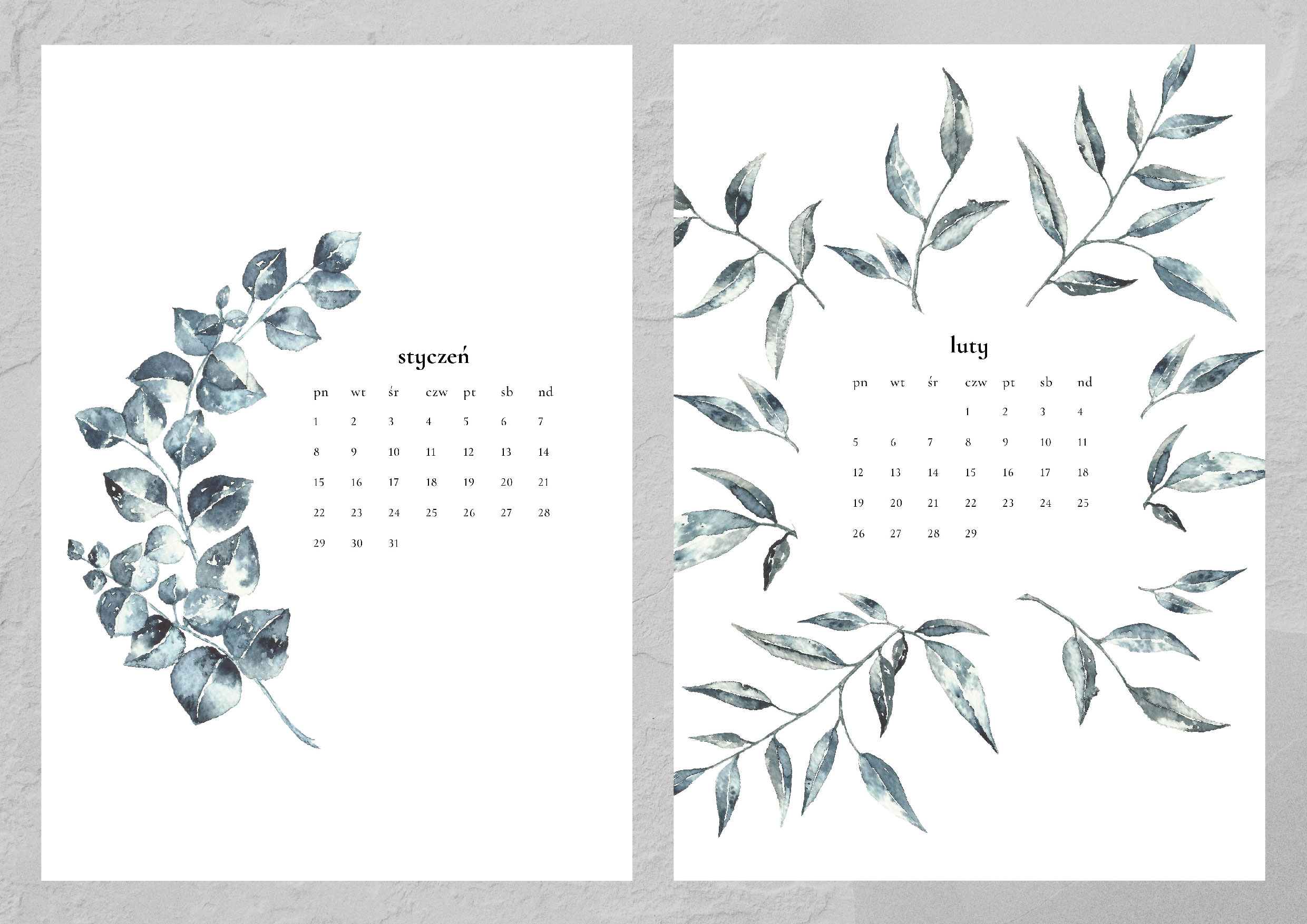 Kalendarz składa się z trzynastu autorskich grafik (12 miesięcy plus okładka). Każda z nich została namalowana ręcznie farbami akwarelowymi, a następnie przeniesiona cyfrowo na karty kalendarza. Całość spięta jest spiralą z wygodną zawieszką.